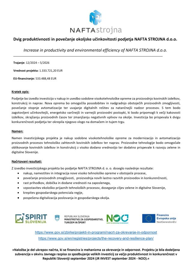 Dvig produktivnosti in povečanje okoljske učinkovitosti podjetja NAFTA STROJNA d.o.o.